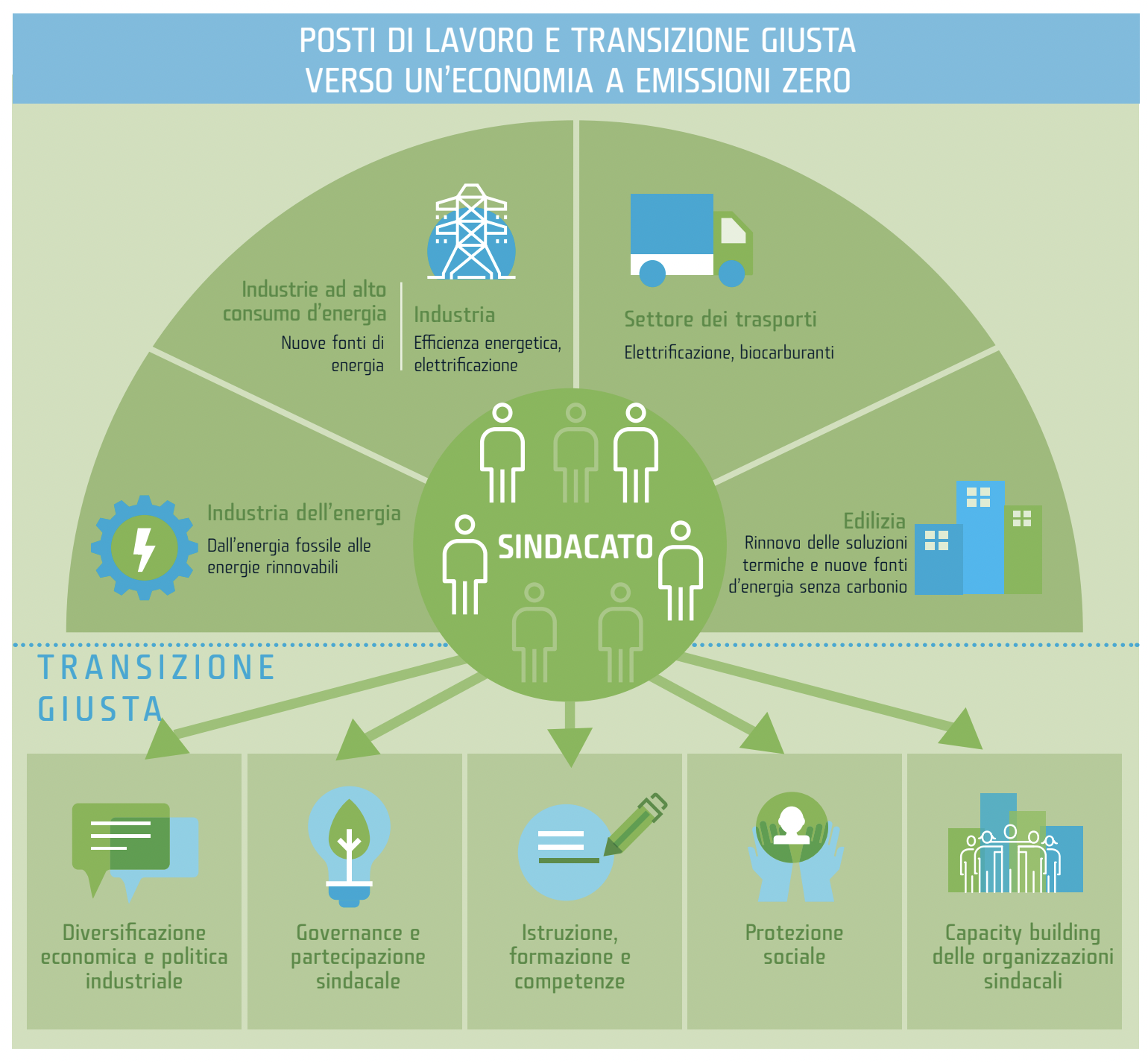 Come afferma l'ETUI (European Trade Union Institute - Istituto europeo per la formazione sindacale) la Giusta Transizione è diventato il concetto centrale della strategia verso una zero-carbon economy (economia a zero emissioni di carbone).